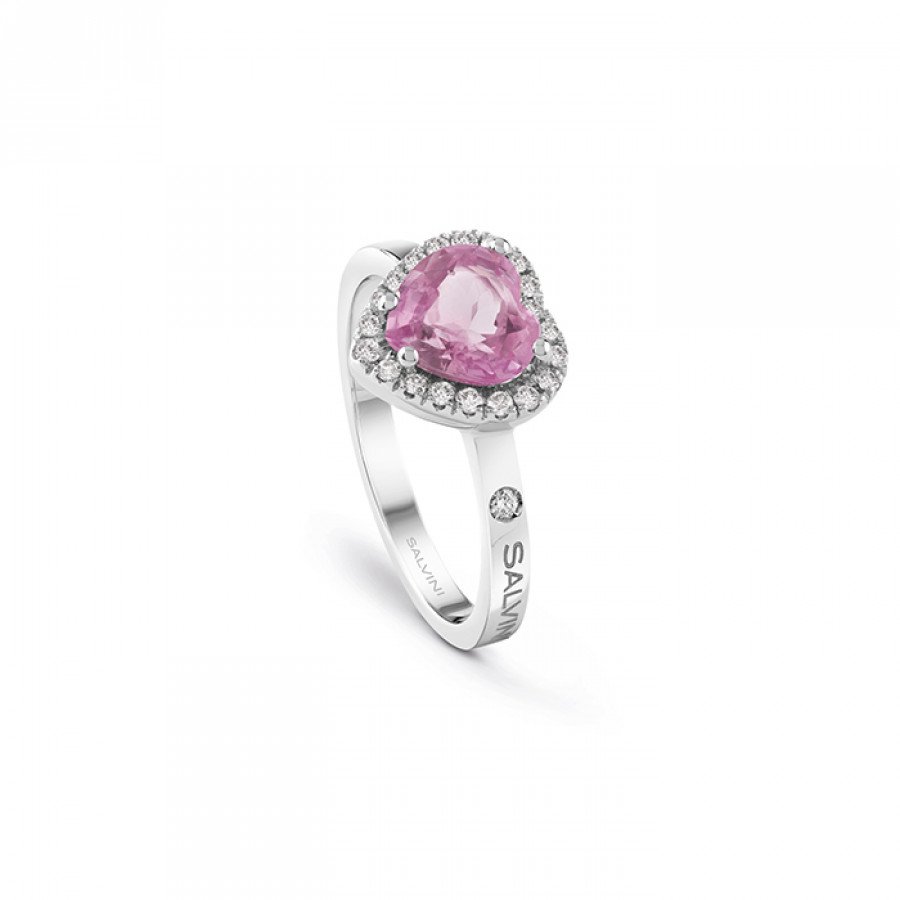 Anello Salvini Cuore in oro bianco con diamante e zaffiro rosa, della collezione Sorrento