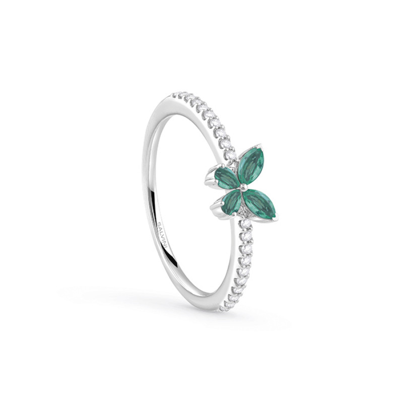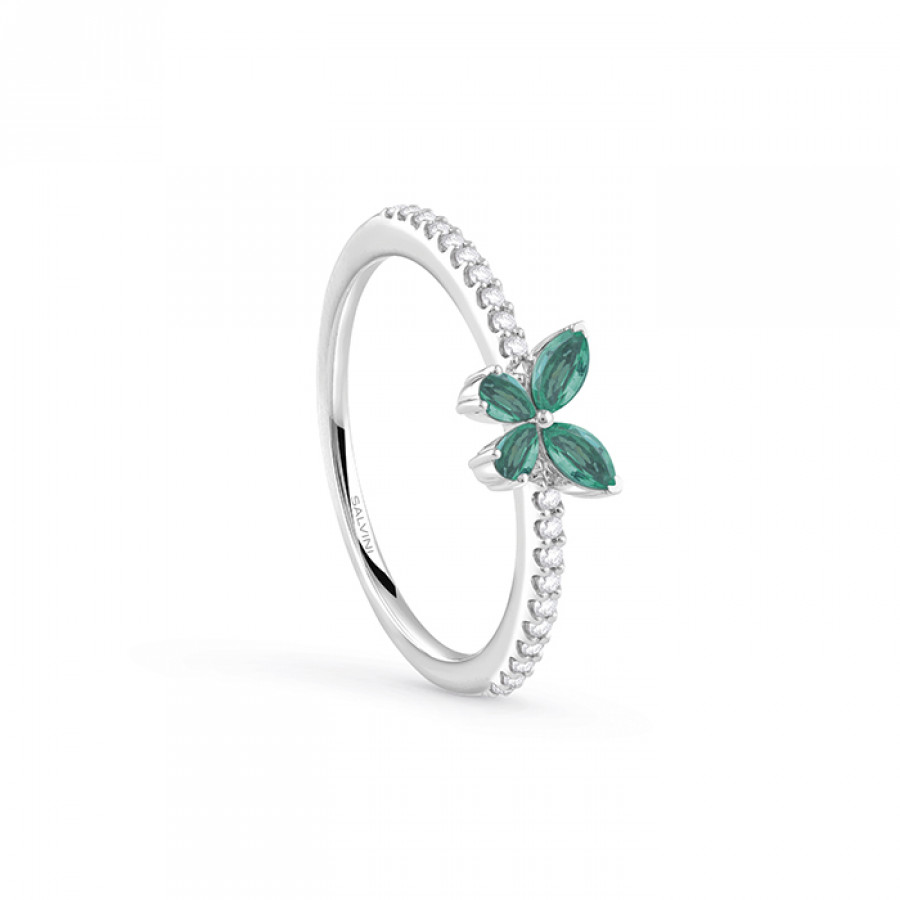 Anello Salvini Libera in oro bianco con diamante e smeraldi