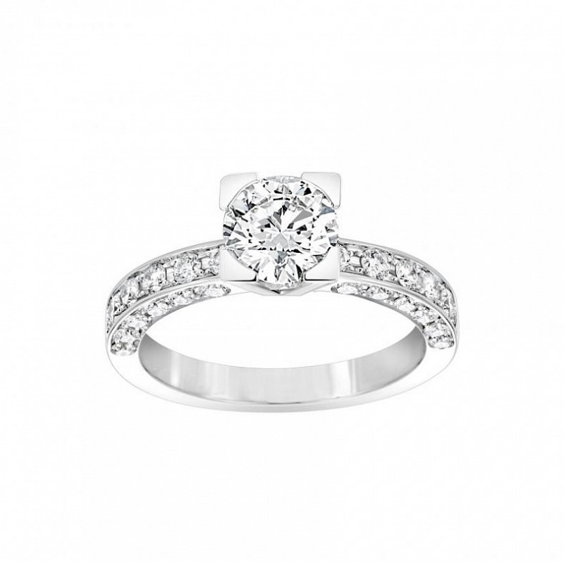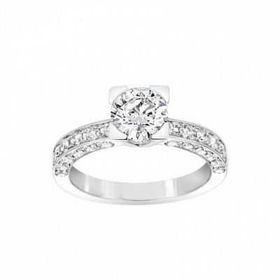 Giorgio Visconti solitario in oro bianco e diamante taglio brillante con inserito diamante laterale e gambo a pavé.