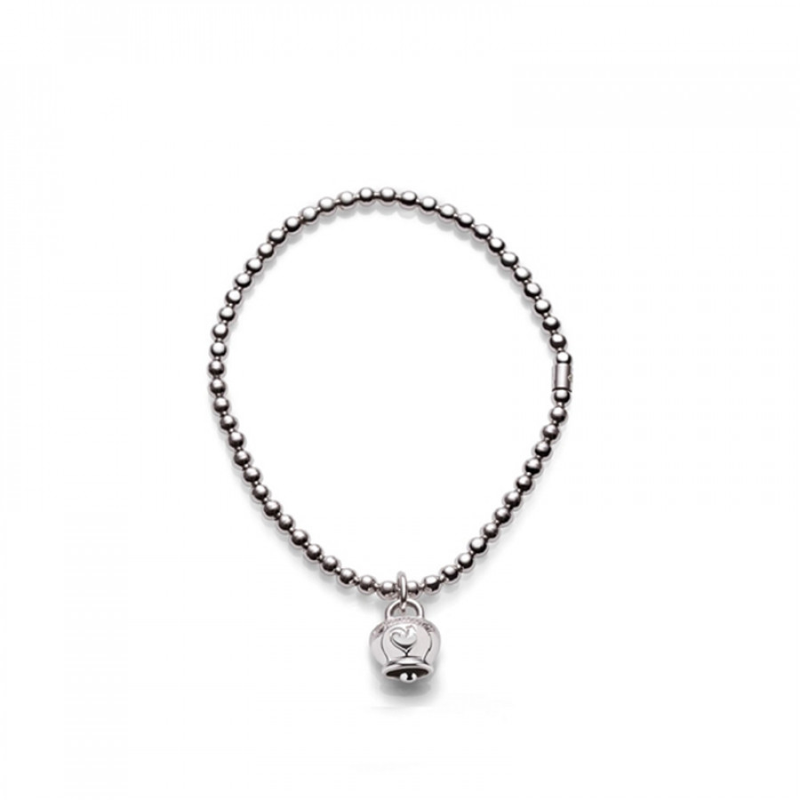 Bracciale elastico in argento con ciondolo campanella micro in argento lucido, biglierina fissa, di Chantecler appartenente alla collezione Et Voilà.