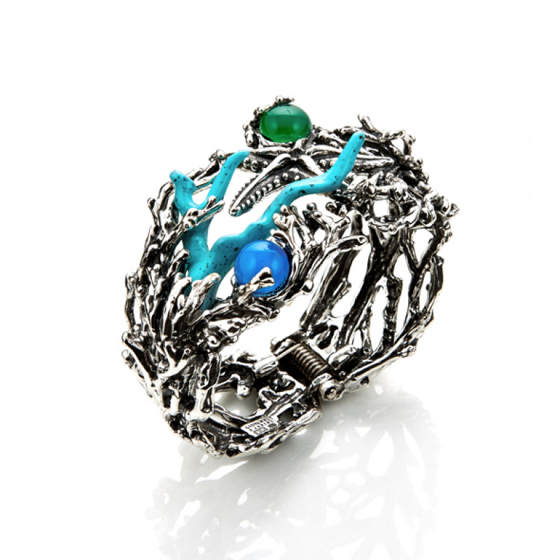 Bracciale in Argento 925, agata blu, agata verde e resina.