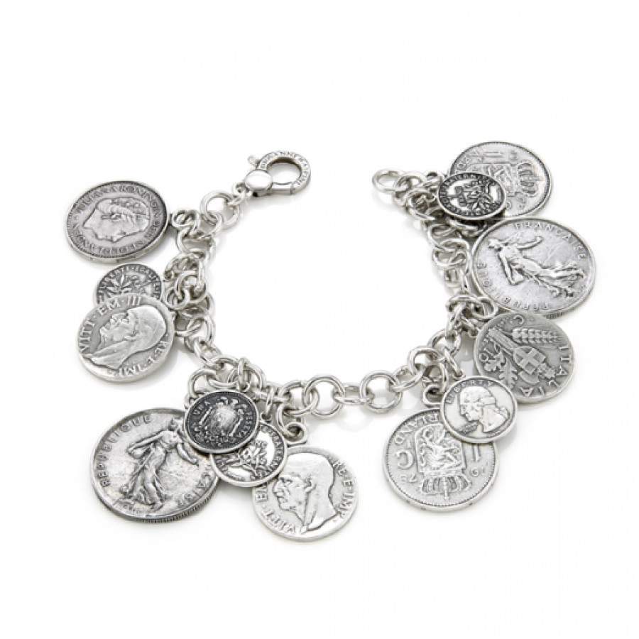 Bracciale della linea Monete firmato Giovanni Raspini appartenente alla collezione Perlage, Intrecci, Corone.