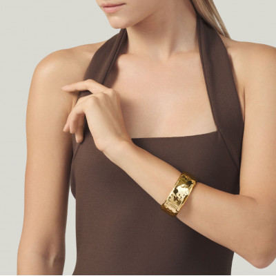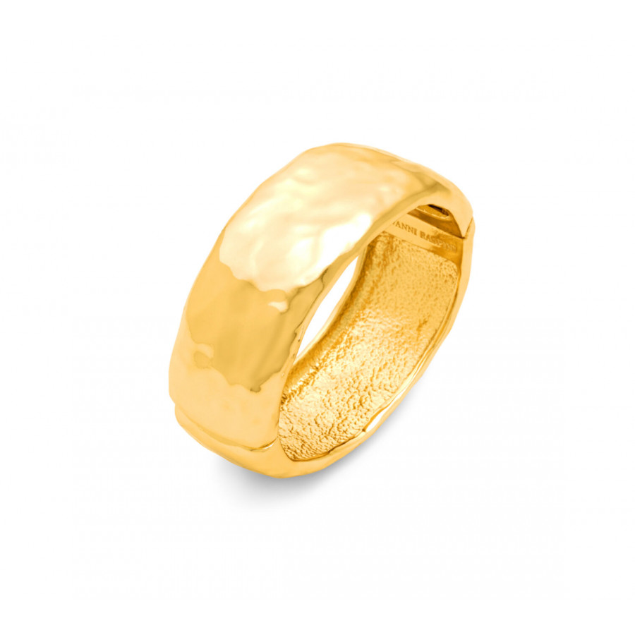 Un bracciale rigido di grande impatto ed eleganza, caratterizzato da un’apertura a molla per una vestibilità comoda e sicura. Realizzato in bronzo dorato con effetto spatolato, cattura lo sguardo con la sua texture unica. Racchiude tutto il fascino e la tradizione della fusione a cera persa. Fatto a mano in azienda.