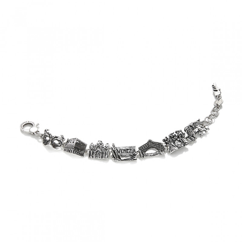 Il fantastico carnevale, Palazzo Ducale, la Basilica di San Marco, le gondole, il Ponte di Rialto, il leone alato: i simboli e i luoghi più importanti racchiusi nel bracciale dedicato alla bellissima e straordinaria città di Venezia.