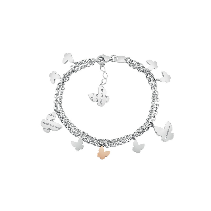 Bracciale in oro rosa e argento con diamante, della collezione Just di Salvini.