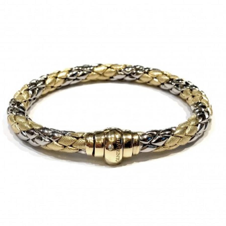 Questo bracciale appartiene alla collezione Chimento Stretch ed è in oro bianco e giallo 18 Kt e diamente naturale taglio brillante ct. 0.01