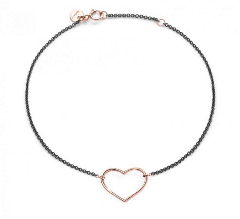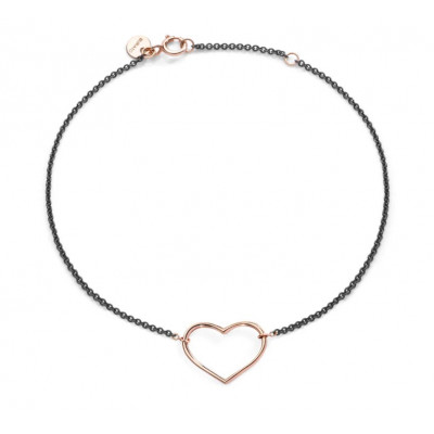 Bracciale in argento PVD nero e cuore in oro rosa della collezione Con Amore di Burato Gioielli.