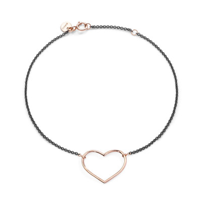Bracciale in argento PVD nero e cuore in oro rosa della collezione Con Amore di Burato Gioielli.