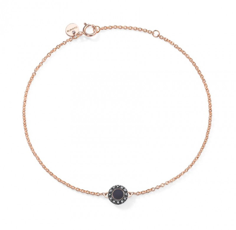 Bracciale in oro rosa e smalto chocolate con paillettes piccole e diamanti della collezione Paillette di Burato Gioielli.