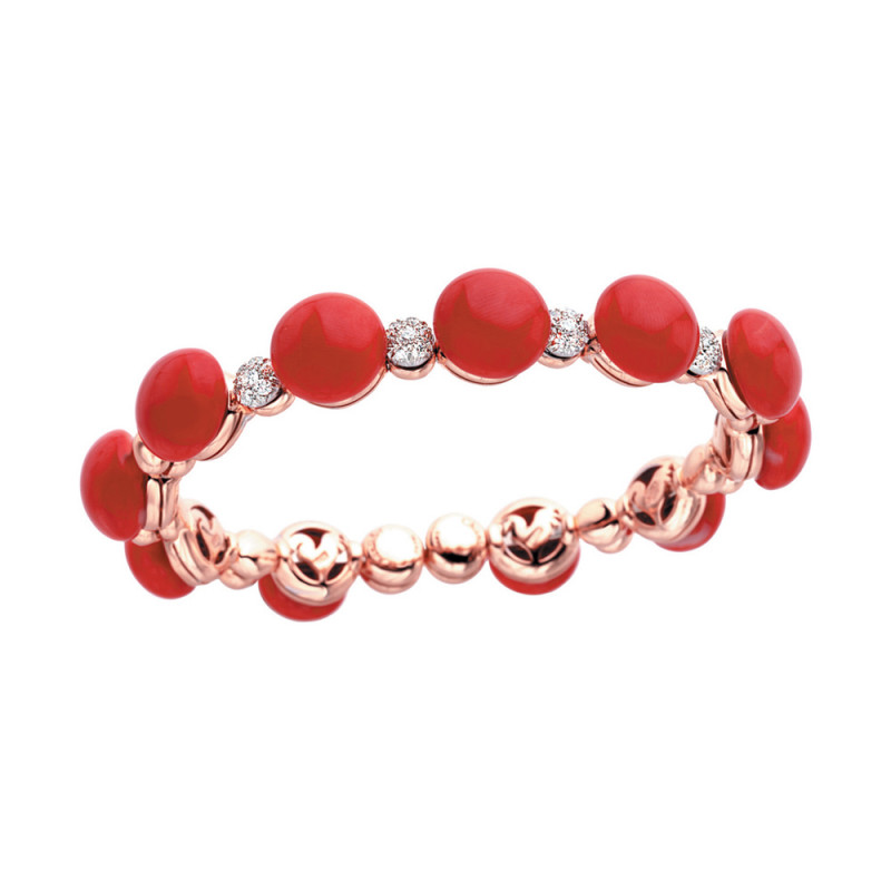 Bracciale Chantecler in oro rosa, diamanti e corallo rosso, appartenente alla collezione Bon Bon.