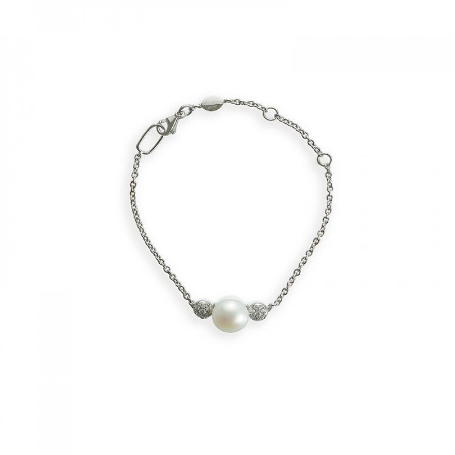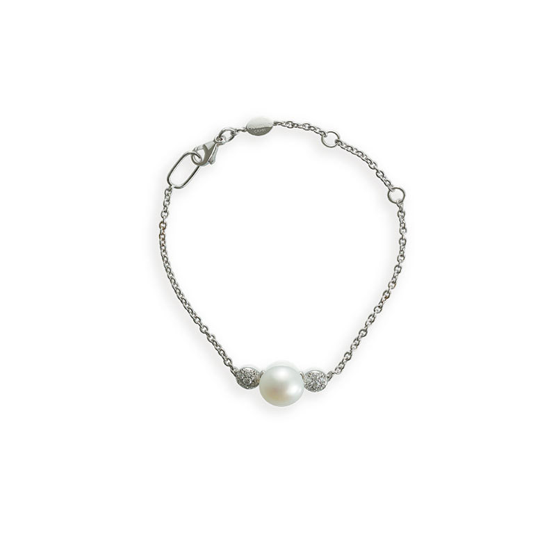 Bracciale Chantecler in oro bianco, diamanti e perla, appartenente alla collezione Bon Bon.