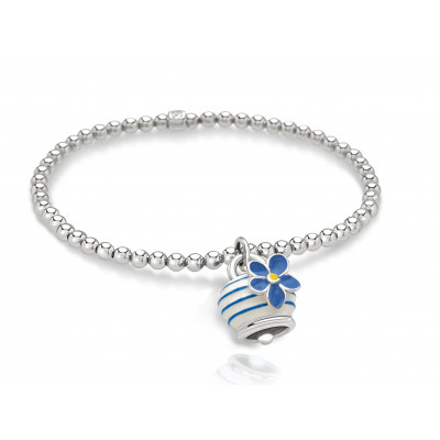 Bracciale Et Voilà elastico campanella micro non ti scordar di me in argento, smalto bianco, turchese e giallo, appartenente alla collezione Et Voilà di Chantecler