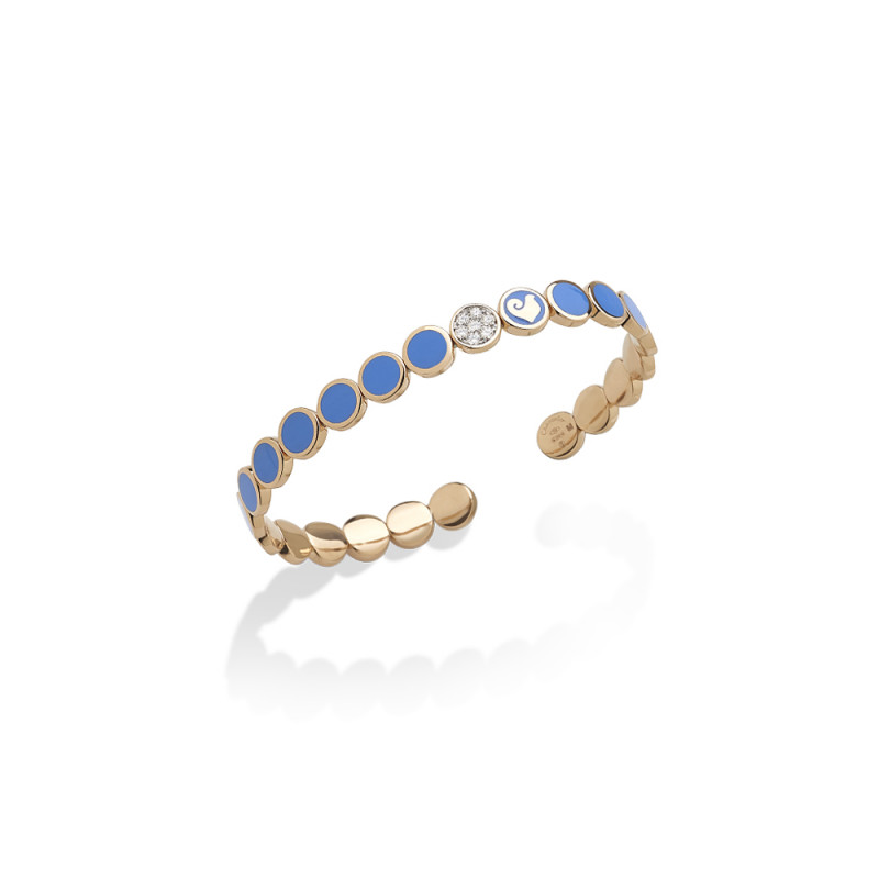 Bracciale Paillettes in oro rosa, diamanti e smalto azzurro di Chantecler della collezione Paillettes