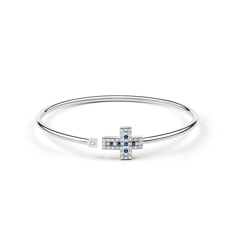 Bracciale Croce in oro bianco, diamanti e zaffiri