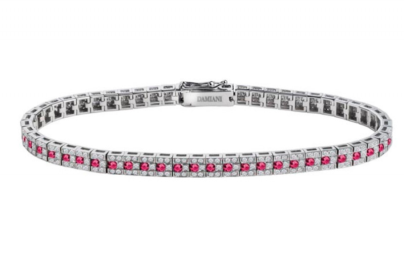 Bracciale Damiani Belle Epoque in oro bianco con diamanti e rubini