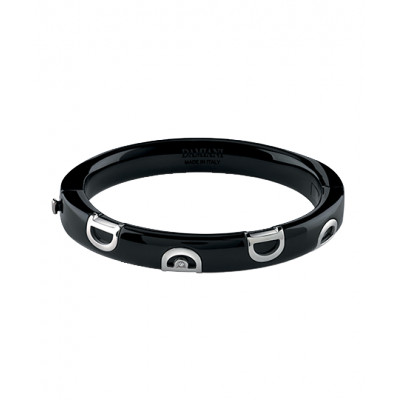Bracciale in ceramica nera e oro rosa con diamante, dalla collezione D.ICON firmata Damiani.