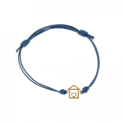 Bracciale con cordino e simbolo casetta a filo in oro rosa 0.50 gr