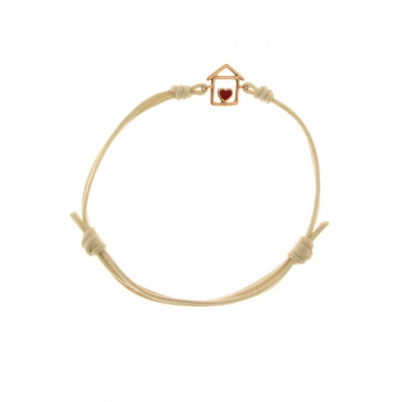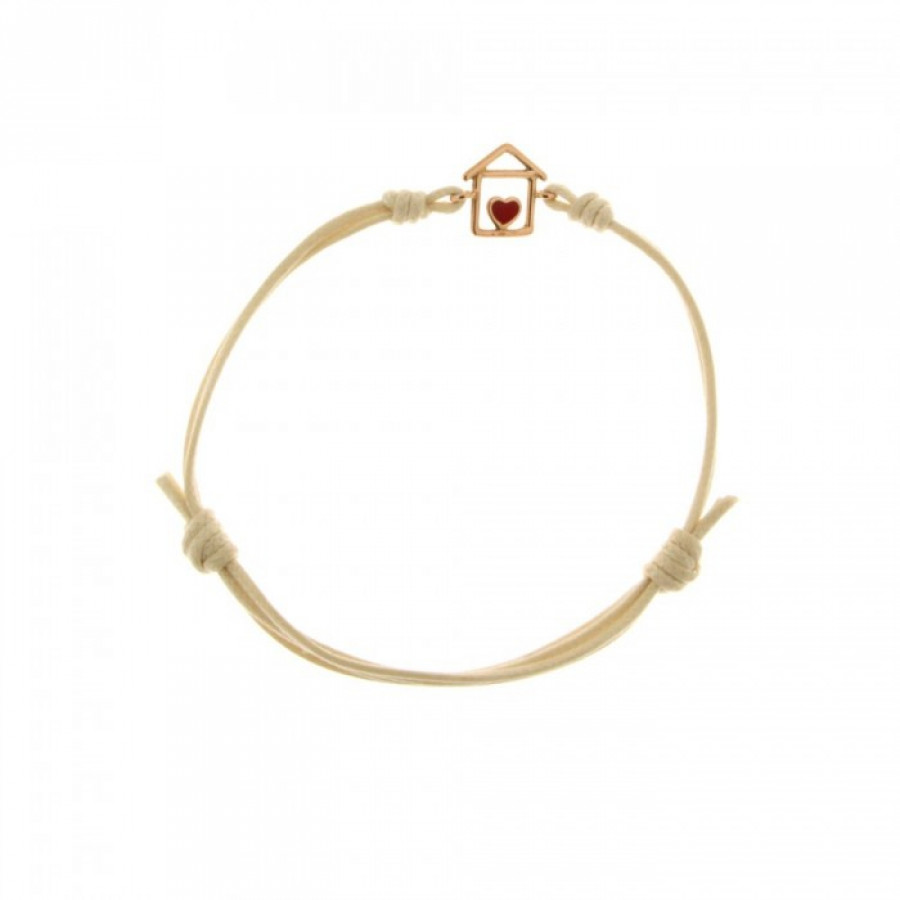 Bracciale con cordino e simbolo casetta a filo in oro rosa 0.80 gr