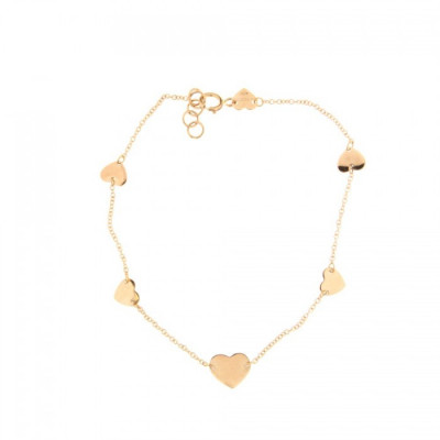 Bracciale in oro rosa 1.60 gr con 5 cuori a lastra