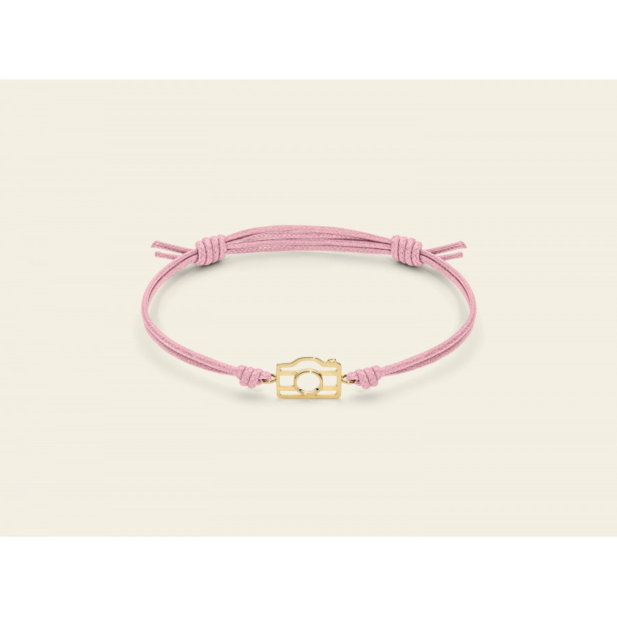 Bracciale Marco Gerbella in oro giallo con cordino disponibile in diversi colori con ciondolo Macchina Fotografica della collezione Piccole Gioie