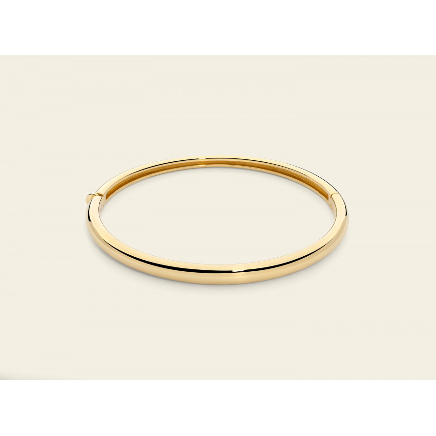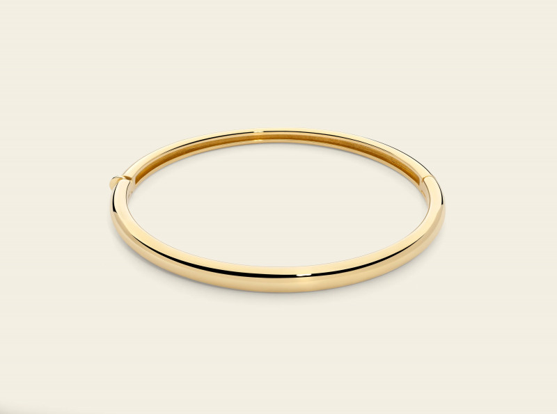 Il bracciale rigido della collezione Flow Marco Gerbella in oro 18 kt interpreta la forma in chiave moderna: volumi pieni, linee morbide e leggerezza assoluta grazie alla struttura in canna vuota. Un gioiello elegante e contemporaneo, perfetto per ogni occasione.
