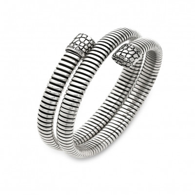 Nato dall’eleganza iconica della maglia tubogas, questo bracciale in argento richiama la grande tradizione della gioielleria del Novecento. Giovanni Raspini lo personalizza mediante il segno iconico della texture di coccodrillo che caratterizza le due estremità, realizzate in argento fuso a cera persa.
