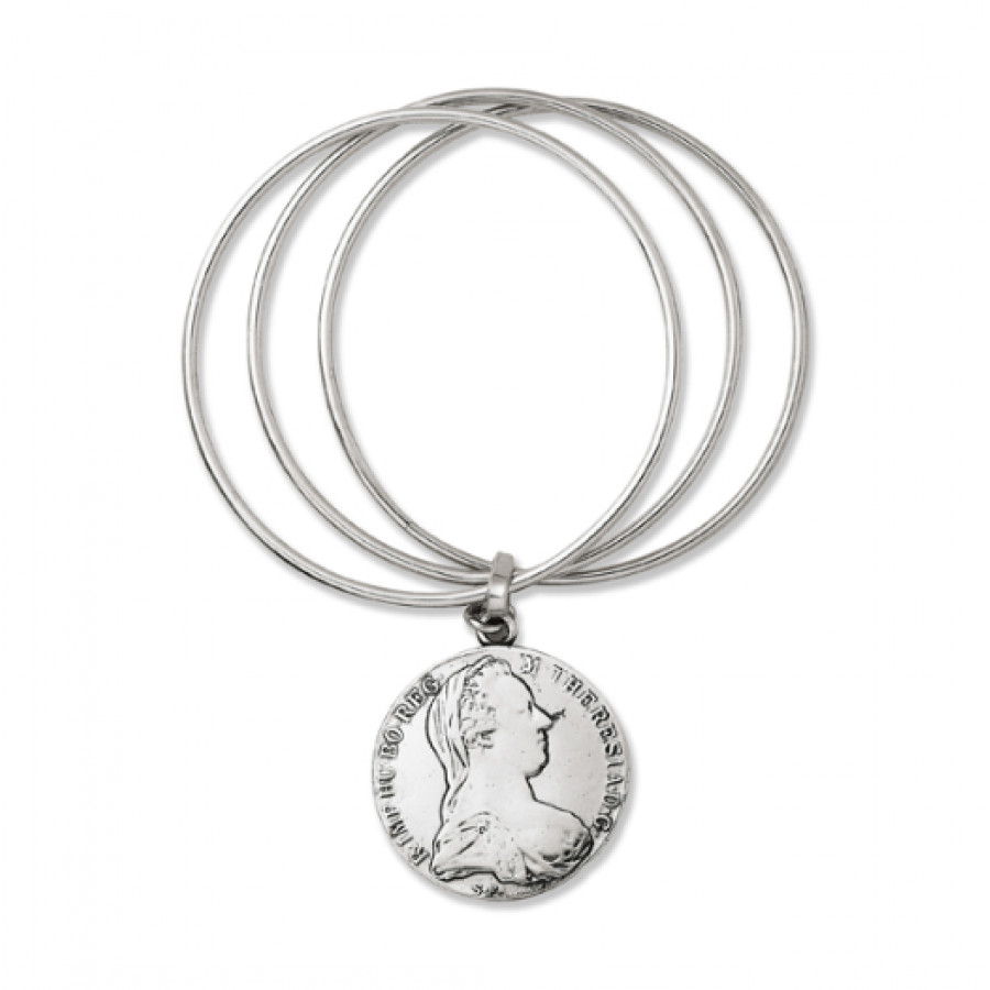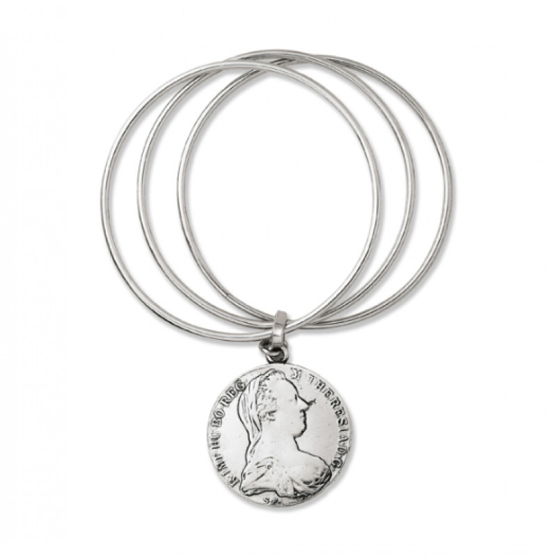Bracciale della linea Monete firmato Giovanni Raspini appartenente alla collezione Perlage, Intrecci, Corone.