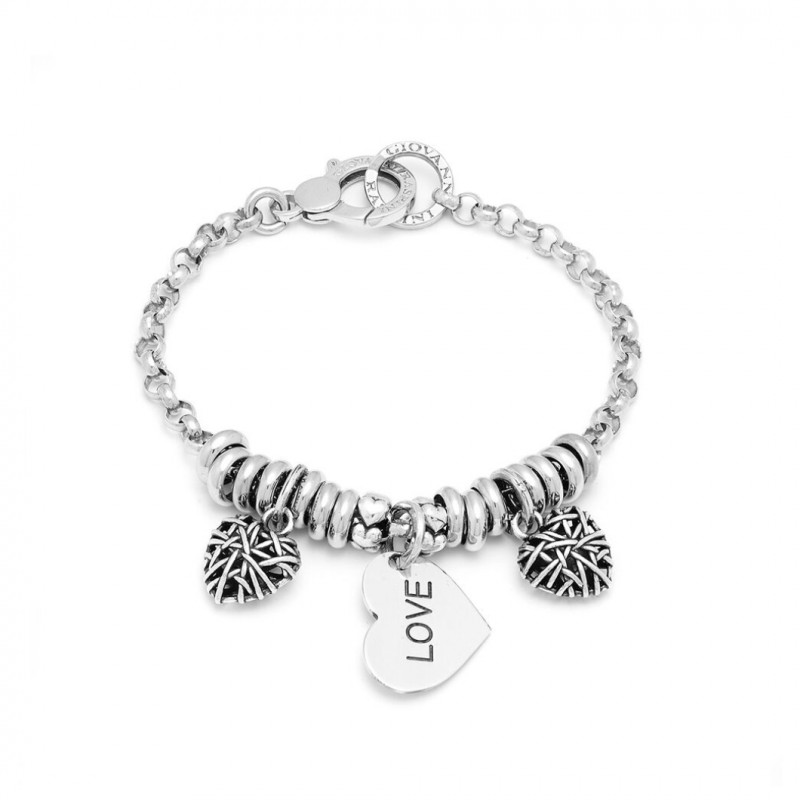 Bracciale Giovanni Raspini Intrecci Di Cuori in argento 925 della collezione Charms.