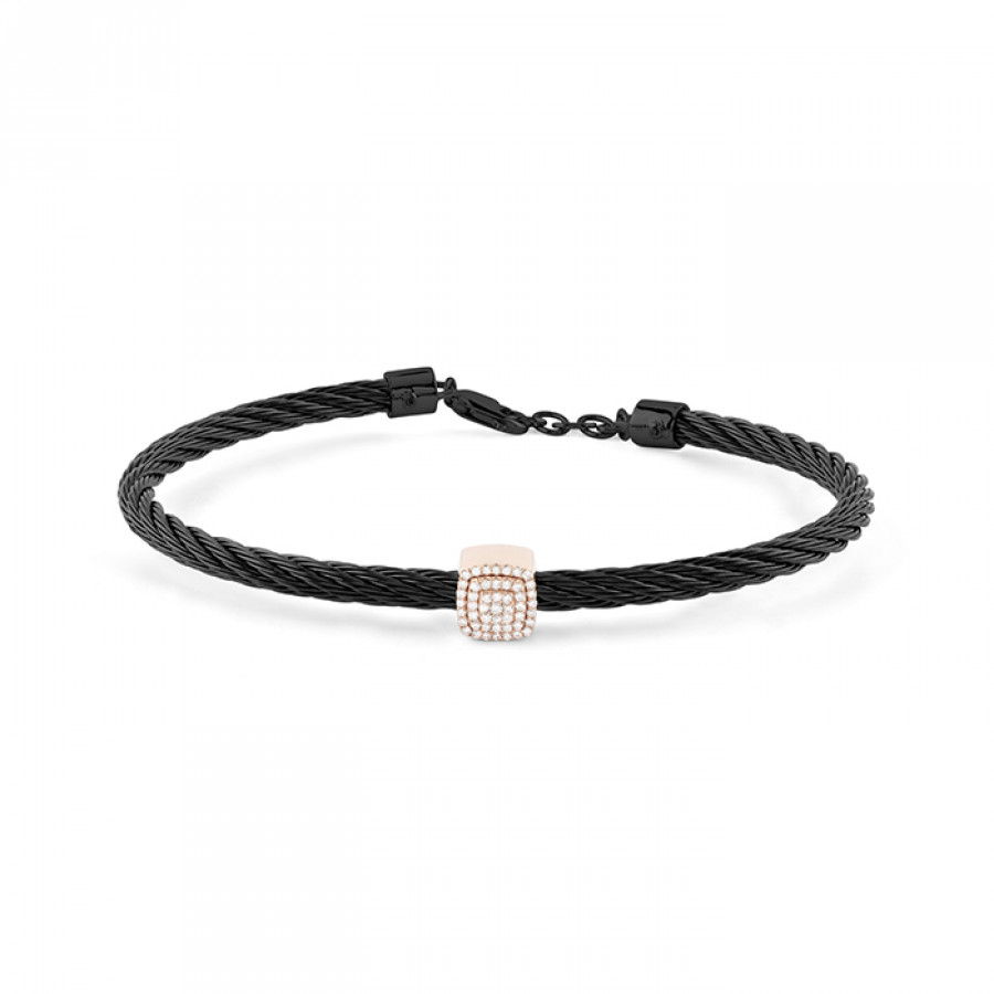 Bracciale Salvini in acciaio nero, con ciondolo quadrato in oro rosa 18 kt con diamanti della collezione Bagliori.