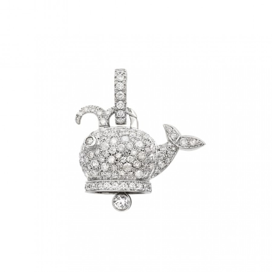 Ciondolo Chantecler Campanella media Balena in oro rosa 18Kt, diamanti, diamanti neri e titanio nero, collezione Campanelle.
