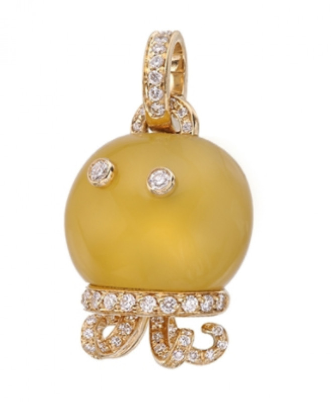 Ciondolo campanella Polpo in oro giallo con diamanti e calcedonio giallo, appartenente alla collezione Marinelle di Chantecler