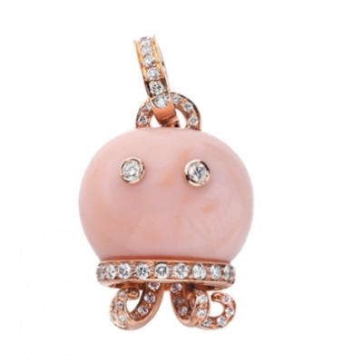 Ciondolo campanella Polpo mini in oro rosa con diamanti e smalto rosa, appartenente alla collezione Marinelle di Chantecler