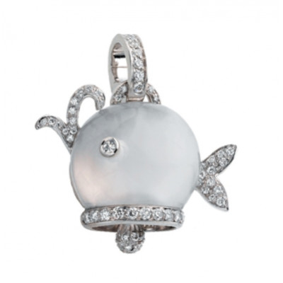 Ciondolo campanella Balena in oro bianco con diamanti e quarzo latteo, appartenente alla collezione Marinelle di Chantecler