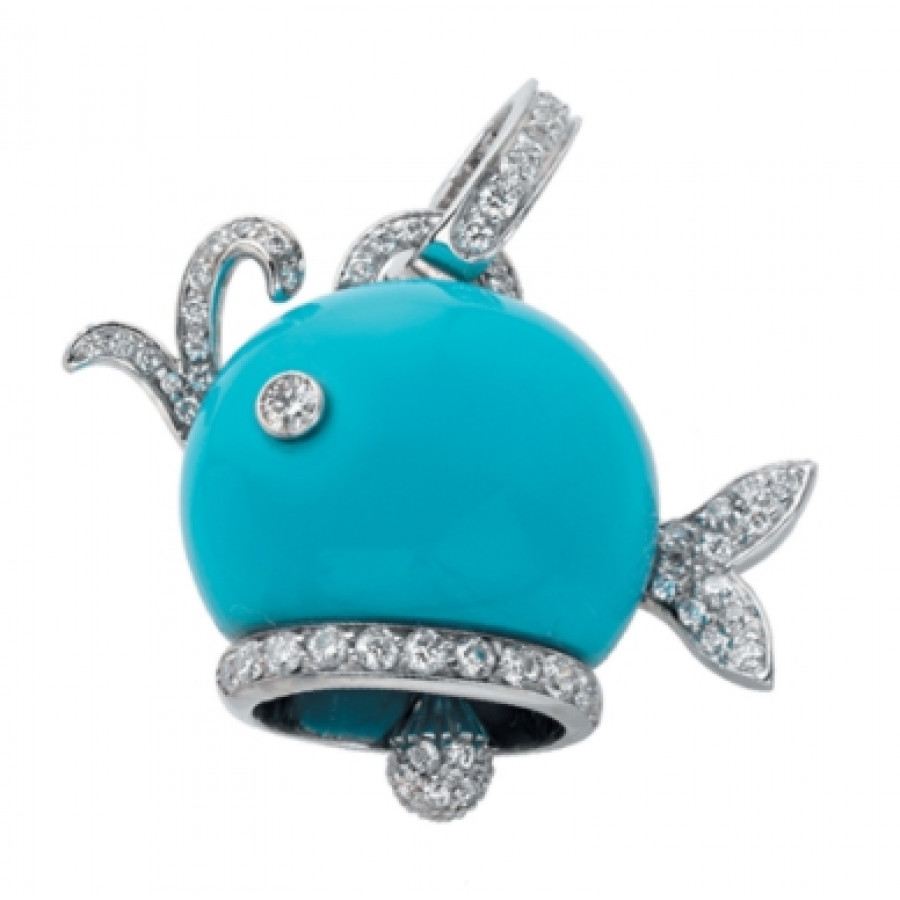 Ciondolo campanella Balena in oro bianco con diamanti e smalto azzurro, appartenente alla collezione Marinelle di Chantecler