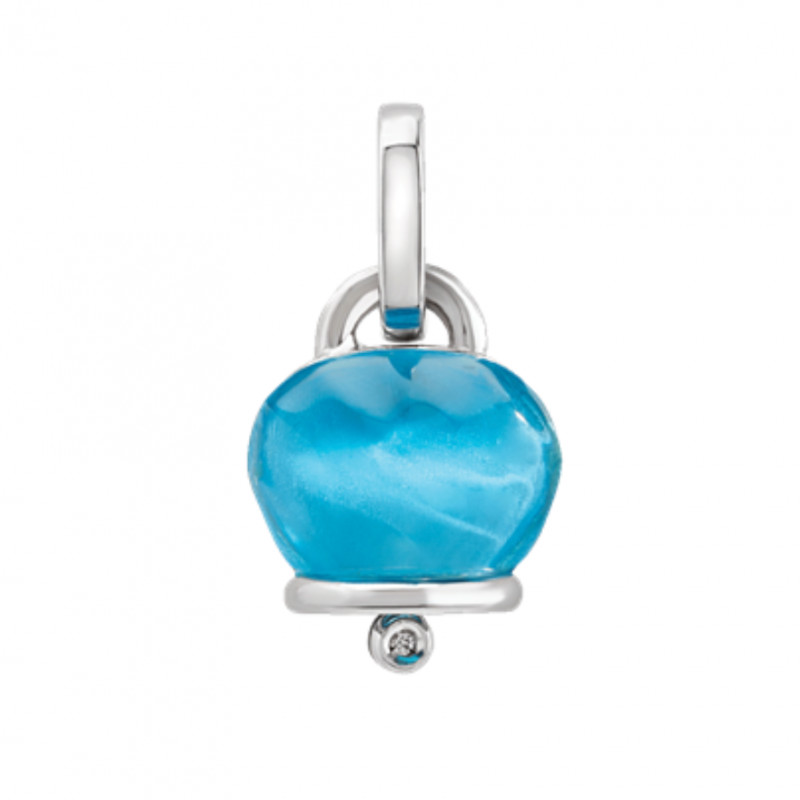 Ciondolo Chantecler Campanella medio in argento, resina sfaccettata a mano color topazio azzurro e un diamante, appartenente alla collezione Et Voilà