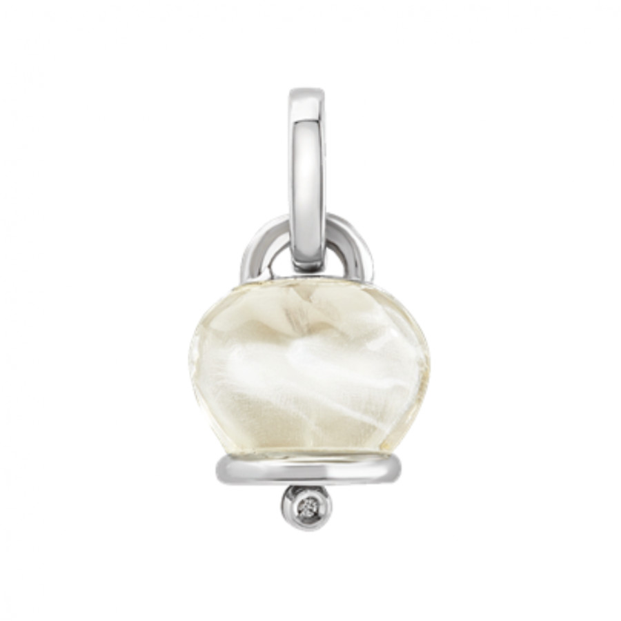 Ciondolo Chantecler Campanella medio in argento, resina sfaccettata a mano color cristallo di rocca e un diamante, appartenente alla collezione Et Voilà