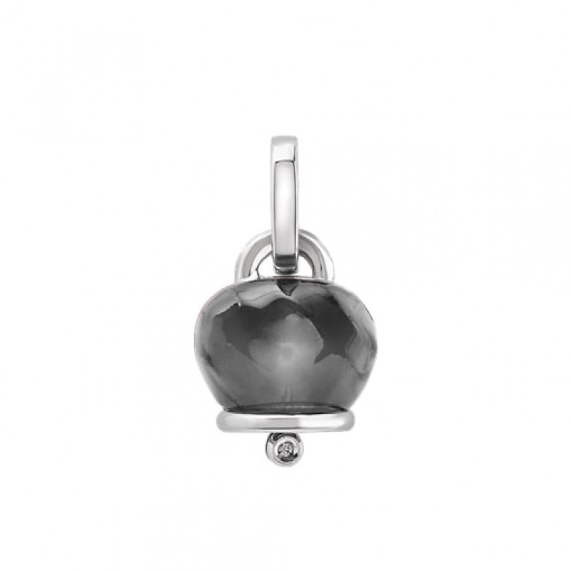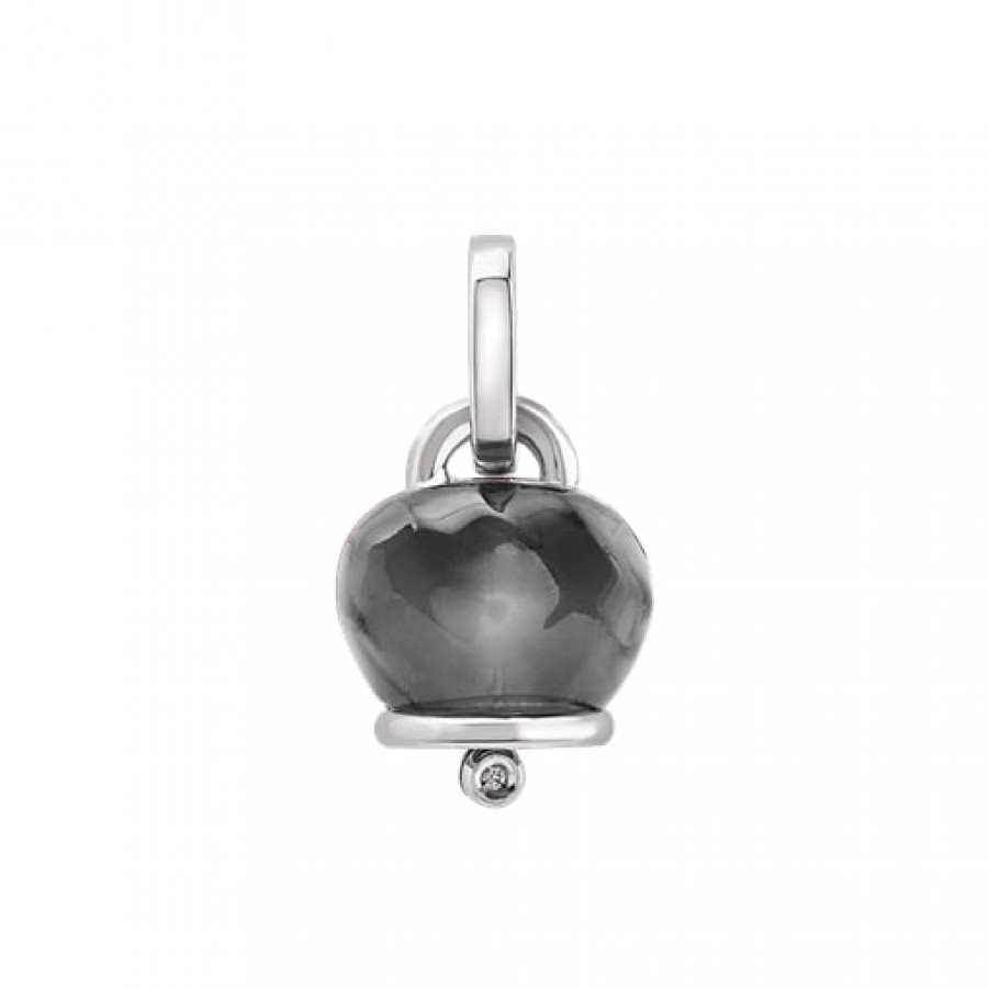 Ciondolo Chantecler Campanella medio in argento, resina sfaccettata a mano color nero e un diamante, appartenente alla collezione Et Voilà
