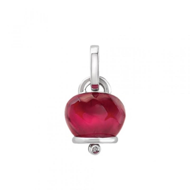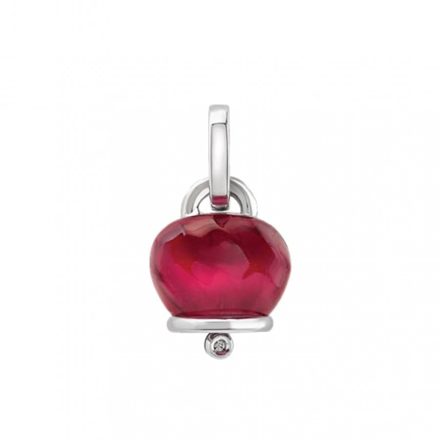 Ciondolo Chantecler Campanella medio in argento, resina sfaccettata a mano color borgogna e un diamante, appartenente alla collezione Et Voilà
