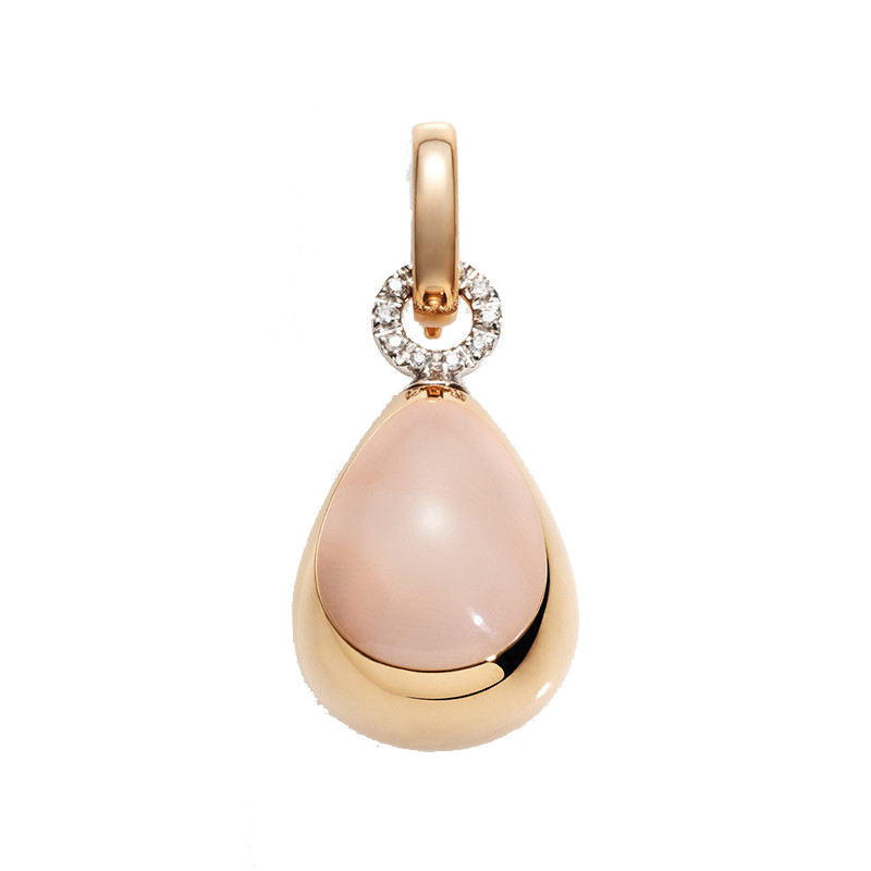 Ciondolo piccolo, goccia in corallo rosa e inserto centrale in pavè di diamanti bianchi, biglierina in diamanti, di Chantecler della collezione Capriful