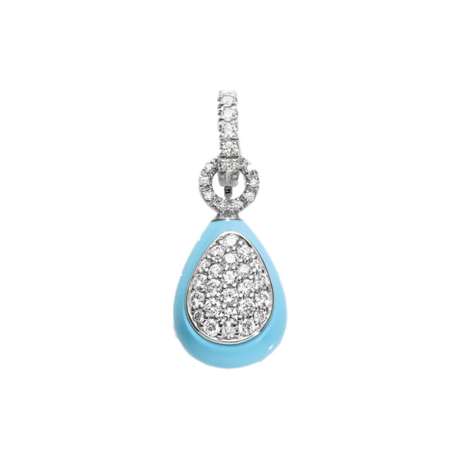 Ciondolo piccolo, goccia in turchese e inserto centrale in pavè di diamanti bianchi, biglierina in diamanti, di Chantecler della collezione Capriful