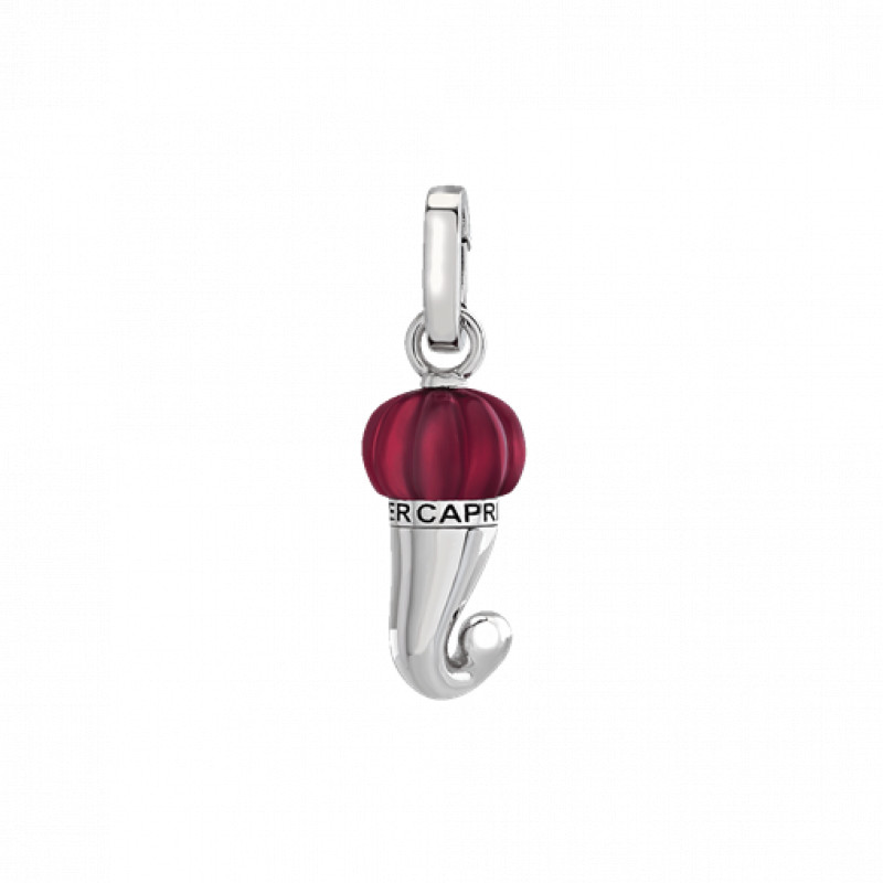 CIondolo Chantecler Corno piccolo in argento e resina borgogna, appartenente alla collezione Et Voilà.
