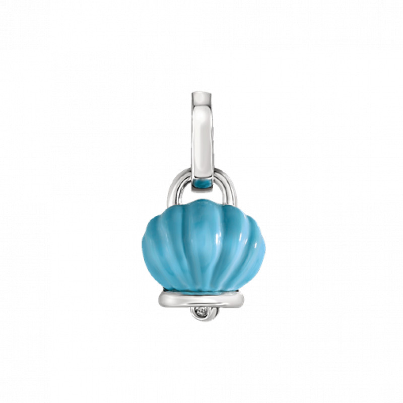 CIondolo Chantecler Campanella Capriness piccola, in argento con bioresina color turchese scolpita a mano e un diamante taglio brillante, appartenente alla collezione Et Voilà.