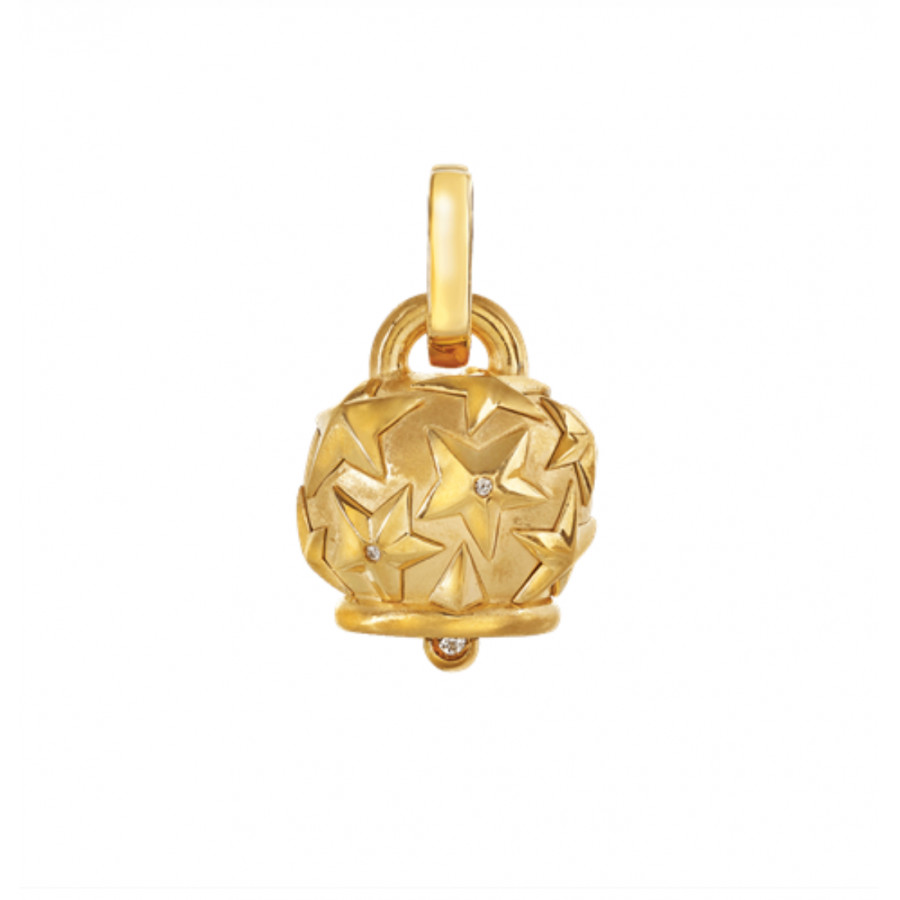 Ciondolo Chantecler Campanella medio con stelle sbalzate a mano, in argento dorato e diamanti taglio brillante, appartenente alla collezione Et Voilà.