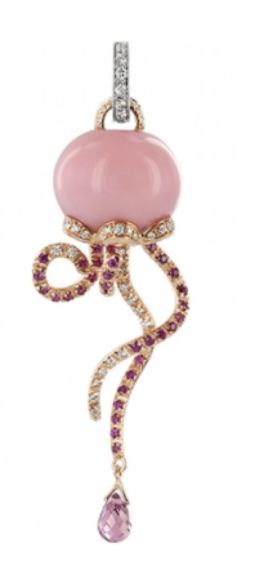 Ciondolo Chantecler Medusa in oro rosa e bianco diamanti bianchi, diamanti, zaffiri rosa e opale rosa, appartenente alla collezione Marinelle.