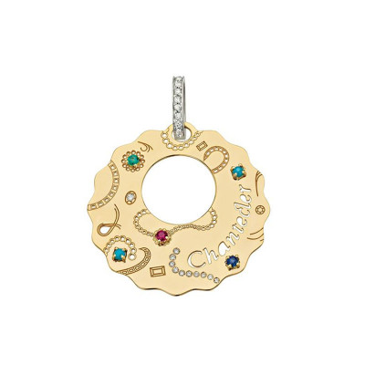 Ciondolo Chantecler medio in oro giallo con turchese, zaffiri, rubini, smeraldi e diamanti, appartenente alla collezione Suamèm.