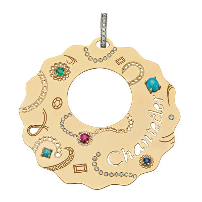 Ciondolo Chantecler maxi in oro giallo con turchese, zaffiri, rubini, smeraldi e diamanti, appartenente alla collezione Suamèm.