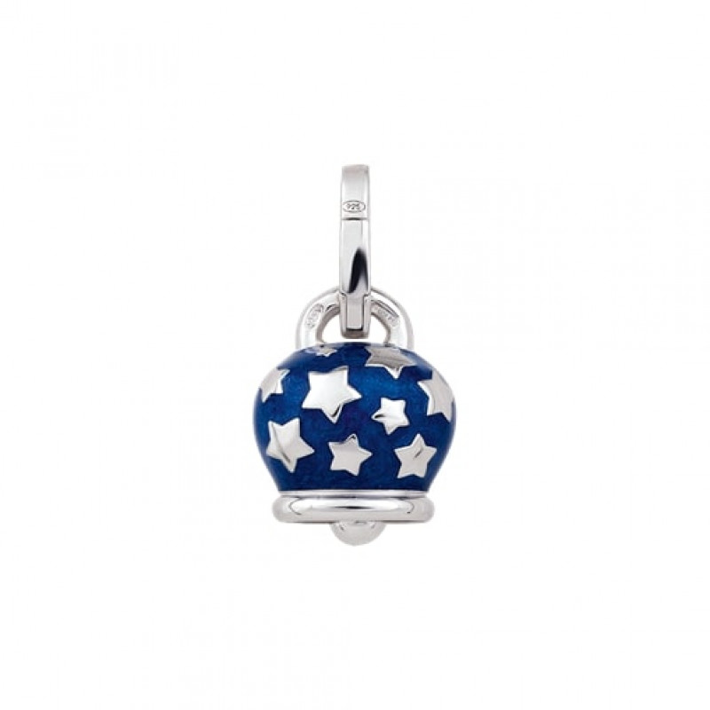Ciondolo Chantecler Campanella media double face in argento e smalto blu perlato, con stelline sul retro, appartenente alla collezione Et Voilà.