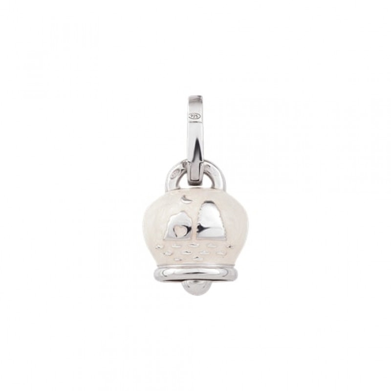 Ciondolo Chantecler Campanella media Double Face in argento e smalto bianco perlato, con faraglioni sul retro, appartenente alla collezione Et Voilà.