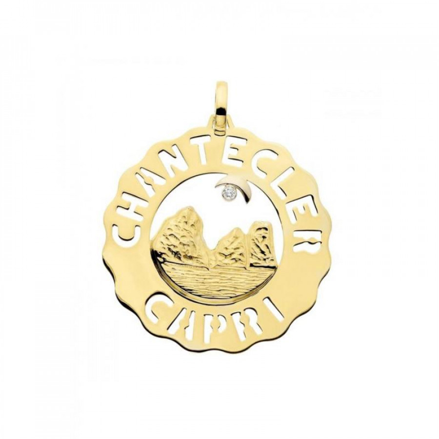 Ciondolo Chantecler singolo grande Faraglioni in oro giallo e diamante, appartenente alla collezione Logo.