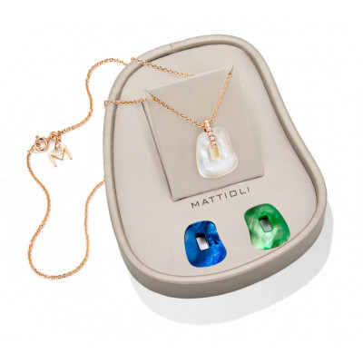 Box Ciondolo Mattioli piccoli e catenina in oro rosa, diamanti brown 0,18 ct. e tre trapezi colorati intercambiabili della collezione Puzzle